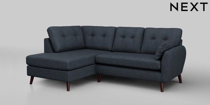 6.12.1 Buy Wilson Buttoned Back Medium Corner Chaise - Left Hand Tweedy Chenille Navy Blue Retro Tapered - Dark Brown from the Next UK online shop Click here to use our accessible website