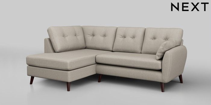6.12.1 Buy Wilson Buttoned Back Medium Corner Chaise - Left Hand Tweedy Chenille Oyster Retro Tapered - Dark Brown from the Next UK online shop Click here to use our accessible website