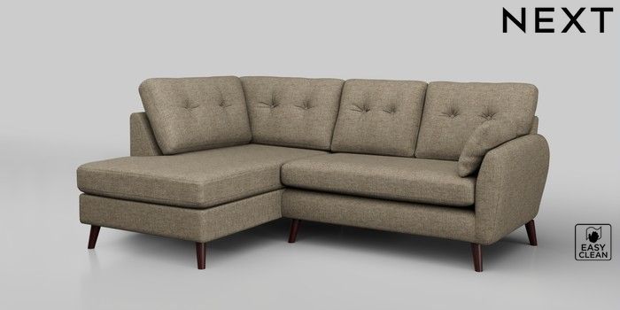 6.12.1 Buy Wilson Buttoned Back Medium Corner Chaise - Left Hand Woven Chenille Easy Clean Mid Natural Retro Tapered - Dark Brown from the Next UK online shop Click here to use our accessible website