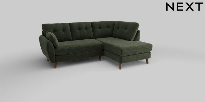 6.12.1 Buy Wilson Buttoned Back Medium Corner Chaise - Right Hand Boucle Chenille Dark Moss Green Retro Tapered - Mid from the Next UK online shop Click here to use our accessible website
