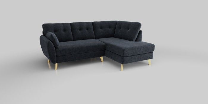6.12.1 Buy Wilson Buttoned Back Medium Corner Chaise - Right Hand Boucle Chenille Dark Slate Blue Metal Tapered - Gold from the Next UK online shop Click here to use our accessible website