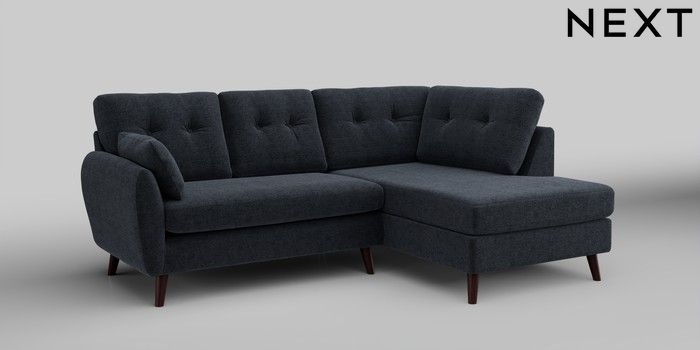 6.12.1 Buy Wilson Buttoned Back Medium Corner Chaise - Right Hand Boucle Chenille Dark Slate Blue Retro Tapered - Dark Brown from the Next UK online shop Click here to use our accessible website