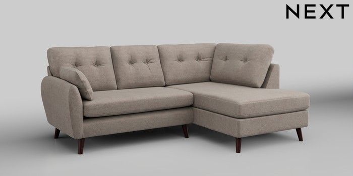 6.12.1 Buy Wilson Buttoned Back Medium Corner Chaise - Right Hand Boucle Chenille Light Natural Retro Tapered - Dark Brown from the Next UK online shop Click here to use our accessible website