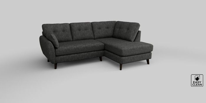 6.12.1 Buy Wilson Buttoned Back Medium Corner Chaise - Right Hand Boucle Weave Easy Clean Charcoal Grey Retro Tapered - Dark from the Next UK online shop Click here to use our accessible website