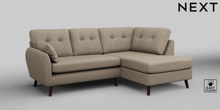 6.12.1 Buy Wilson Buttoned Back Medium Corner Chaise - Right Hand Boucle Weave Easy Clean Dark Natural Retro Tapered - Dark Brown from the Next UK online shop Click here to use our accessible website