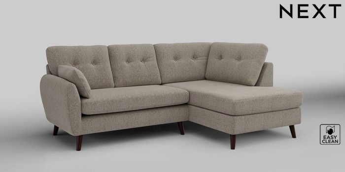 6.12.1 Buy Wilson Buttoned Back Medium Corner Chaise - Right Hand Chunky Boucle Easy Clean Dove Retro Tapered - Dark Brown from the Next UK online shop Click here to use our accessible website