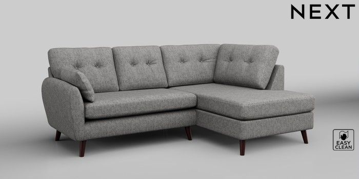 6.12.1 Buy Wilson Buttoned Back Medium Corner Chaise - Right Hand Chunky Boucle Easy Clean Light Grey Retro Tapered - Dark Brown from the Next UK online shop Click here to use our accessible website