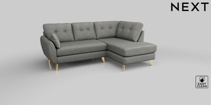 6.12.1 Buy Wilson Buttoned Back Medium Corner Chaise - Right Hand Chunky Boucle Easy Clean Mid Grey Metal Tapered - Gold from the Next UK online shop Click here to use our accessible website