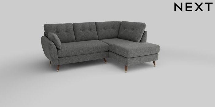 6.12.1 Buy Wilson Buttoned Back Medium Corner Chaise - Right Hand Chunky Chenille Dark Grey Low Retro Tapered Metal Cap - Mid from the Next UK online shop Click here to use our accessible website