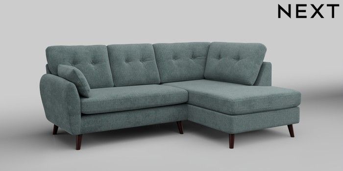 6.12.1 Buy Wilson Buttoned Back Medium Corner Chaise - Right Hand Chunky Chenille Light Teal Green Retro Tapered - Dark Brown from the Next UK online shop Click here to use our accessible website
