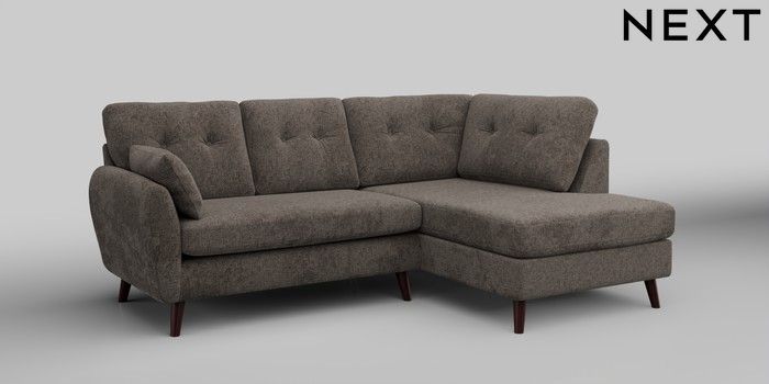 6.12.1 Buy Wilson Buttoned Back Medium Corner Chaise - Right Hand Chunky Chenille Mink Brown Retro Tapered - Dark Brown from the Next UK online shop Click here to use our accessible website