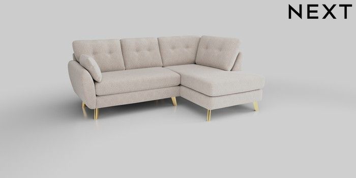 6.12.1 Buy Wilson Buttoned Back Medium Corner Chaise - Right Hand Chunky Chenille Oyster Metal Tapered - Gold from the Next UK online shop Click here to use our accessible website