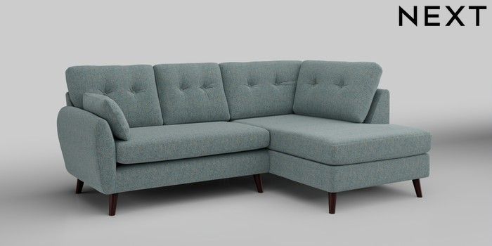 6.12.1 Buy Wilson Buttoned Back Medium Corner Chaise - Right Hand Chunky Marl Mid Blue Retro Tapered - Dark Brown from the Next UK online shop Click here to use our accessible website