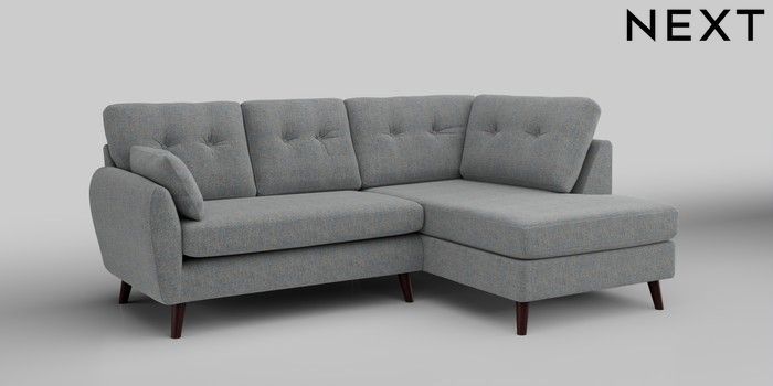 6.12.1 Buy Wilson Buttoned Back Medium Corner Chaise - Right Hand Chunky Marl Mid Grey Retro Tapered - Dark Brown from the Next UK online shop Click here to use our accessible website