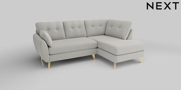 6.12.1 Buy Wilson Buttoned Back Medium Corner Chaise - Right Hand Chunky Texture Dove Metal Tapered - Gold from the Next UK online shop Click here to use our accessible website