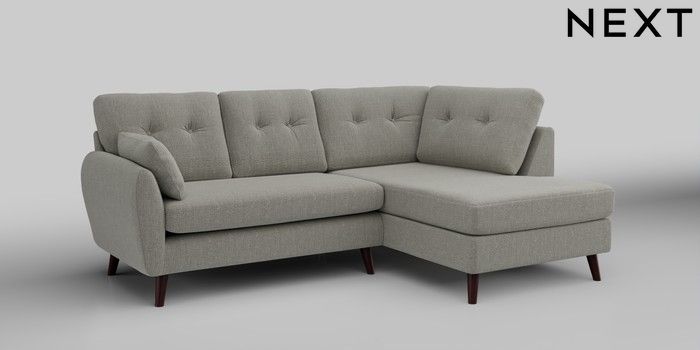 6.12.1 Buy Wilson Buttoned Back Medium Corner Chaise - Right Hand Chunky Texture Dove Retro Tapered - Dark Brown from the Next UK online shop Click here to use our accessible website