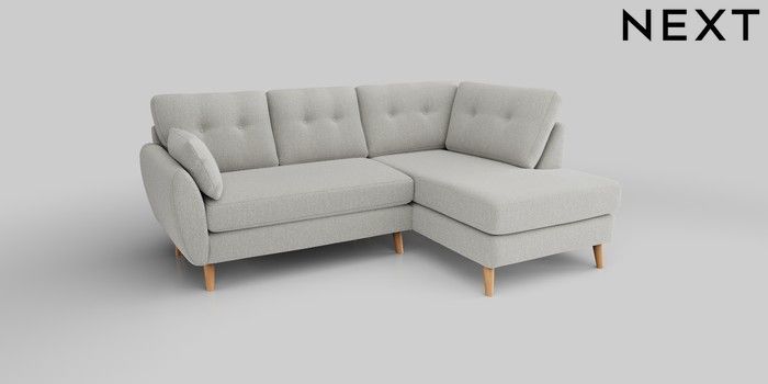 6.12.1 Buy Wilson Buttoned Back Medium Corner Chaise - Right Hand Chunky Texture Dove Retro Tapered - Light from the Next UK online shop Click here to use our accessible website