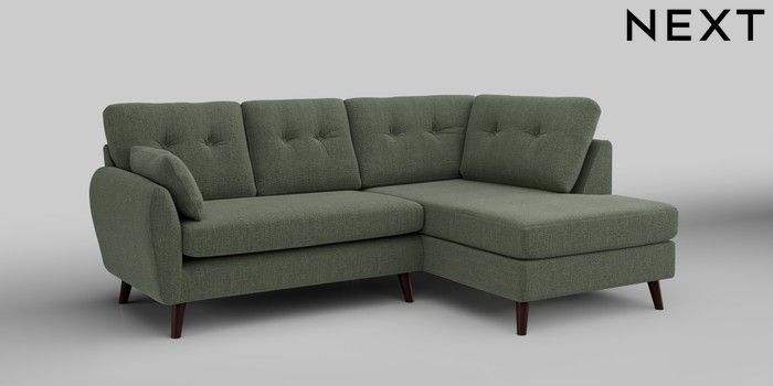 6.12.1 Buy Wilson Buttoned Back Medium Corner Chaise - Right Hand Chunky Texture Mid Forest Green Retro Tapered - Dark Brown from the Next UK online shop Click here to use our accessible website