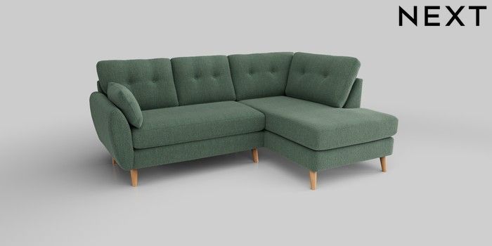 6.12.1 Buy Wilson Buttoned Back Medium Corner Chaise - Right Hand Chunky Texture Mid Forest Green Retro Tapered - Light from the Next UK online shop Click here to use our accessible website