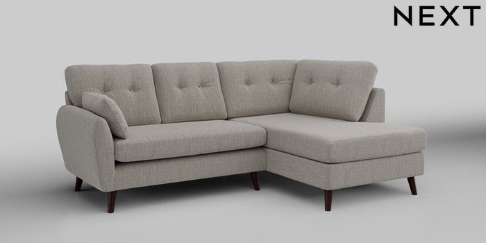6.12.1 Buy Wilson Buttoned Back Medium Corner Chaise - Right Hand Chunky Weave Dove Grey Retro Tapered - Dark Brown from the Next UK online shop Click here to use our accessible website