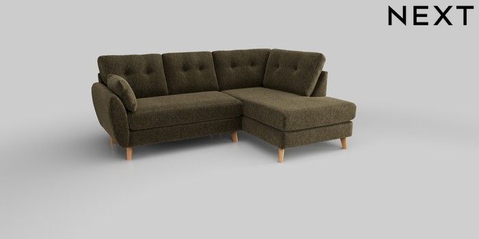 6.12.1 Buy Wilson Buttoned Back Medium Corner Chaise - Right Hand Cotswold Chenille Dark Green Retro Tapered - Light from the Next UK online shop Click here to use our accessible website