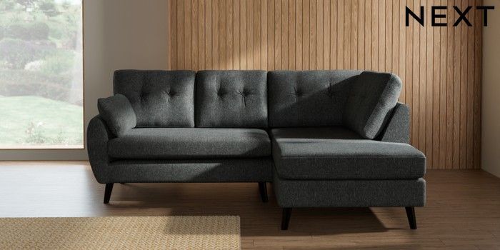 7.3.1 Buy Wilson Buttoned Back Medium Corner Chaise - Right Hand Cotswold Chenille Dark Grey Retro Tapered - Dark from the Next UK online shop