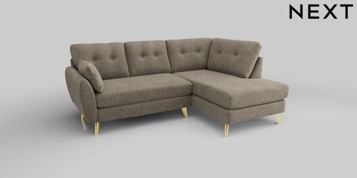 6.12.1 Buy Wilson Buttoned Back Medium Corner Chaise - Right Hand Cotswold Chenille Mid Mink Brown Metal Tapered - Gold from the Next UK online shop Click here to use our accessible website