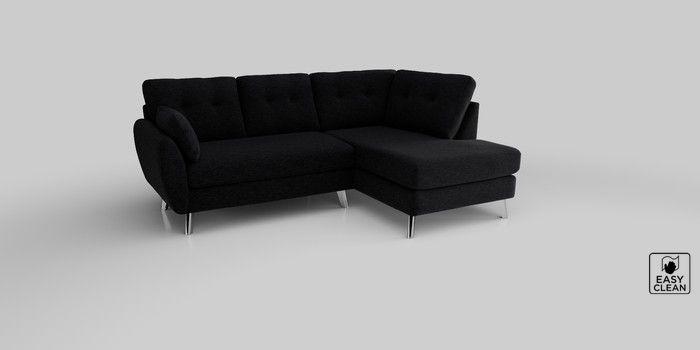 6.12.1 Buy Wilson Buttoned Back Medium Corner Chaise - Right Hand Fine Chenille Easy Clean Black Metal Tapered - Chrome from the Next UK online shop Click here to use our accessible website