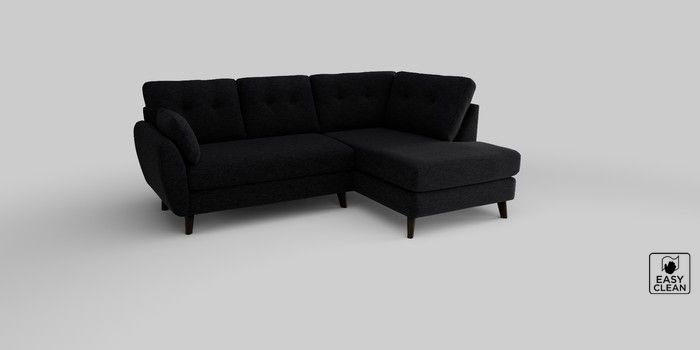 6.12.1 Buy Wilson Buttoned Back Medium Corner Chaise - Right Hand Fine Chenille Easy Clean Black Retro Tapered - Dark from the Next UK online shop Click here to use our accessible website