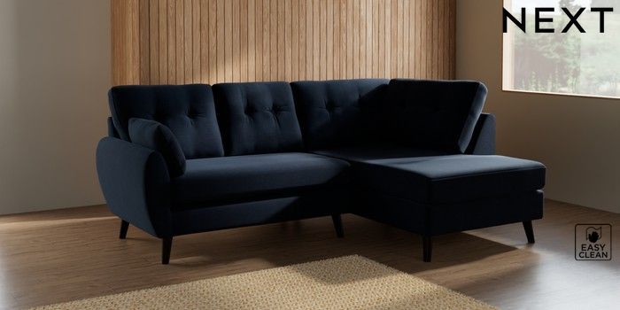 7.2.10 Buy Wilson Buttoned Back Medium Corner Chaise - Right Hand Fine Chenille Easy Clean Dark Navy Blue Retro Tapered - Dark from the Next UK online shop Click here to use our accessible website