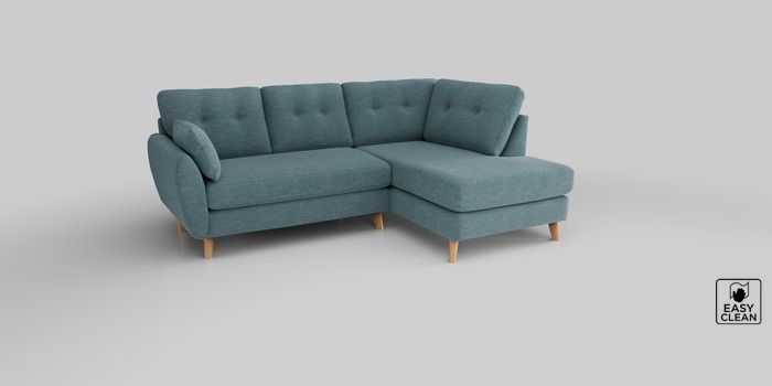 6.12.1 Buy Wilson Buttoned Back Medium Corner Chaise - Right Hand Fine Chenille Easy Clean Mid Blue Retro Tapered - Light from the Next UK online shop Click here to use our accessible website