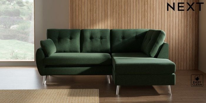 7.3.1 Buy Wilson Buttoned Back Medium Corner Chaise - Right Hand Fine Chenille Easy Clean Mid Khaki Green Metal Tapered - Chrome from the Next UK online shop Click here to use our accessible website