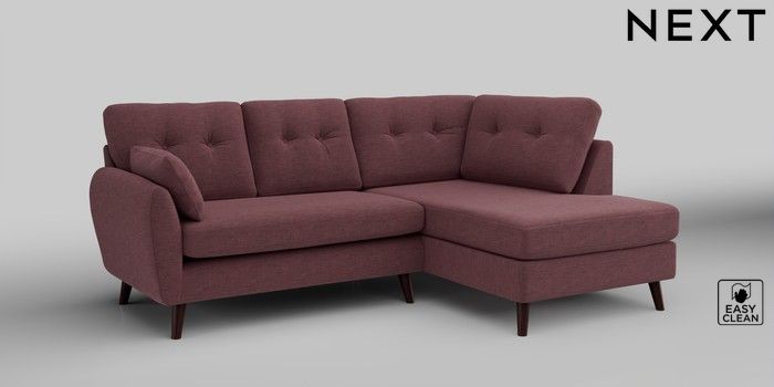 6.12.1 Buy Wilson Buttoned Back Medium Corner Chaise - Right Hand Fine Chenille Easy Clean Mid Mulberry Purple Retro Tapered - Dark Brown from the Next UK online shop Click here to use our accessible website
