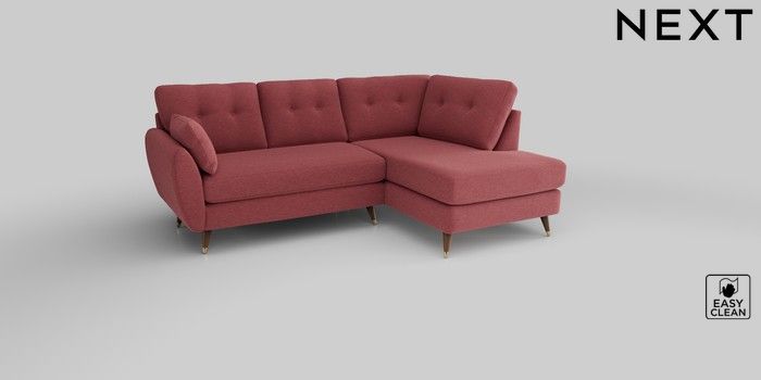 6.12.1 Buy Wilson Buttoned Back Medium Corner Chaise - Right Hand Fine Chenille Easy Clean Mid Pink Low Retro Tapered Metal Cap - Mid from the Next UK online shop Click here to use our accessible website