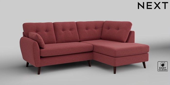 6.12.1 Buy Wilson Buttoned Back Medium Corner Chaise - Right Hand Fine Chenille Easy Clean Mid Pink Retro Tapered - Dark Brown from the Next UK online shop Click here to use our accessible website