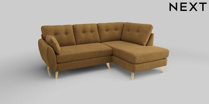 6.12.1 Buy Wilson Buttoned Back Medium Corner Chaise - Right Hand Luxe Chenille Honey Yellow Metal Tapered - Gold from the Next UK online shop Click here to use our accessible website