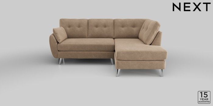 6.12.1 Buy Wilson Buttoned Back Medium Corner Chaise - Right Hand Luxe Chenille Mid Camel Beige Metal Tapered - Chrome from the Next UK online shop Click here to use our accessible website