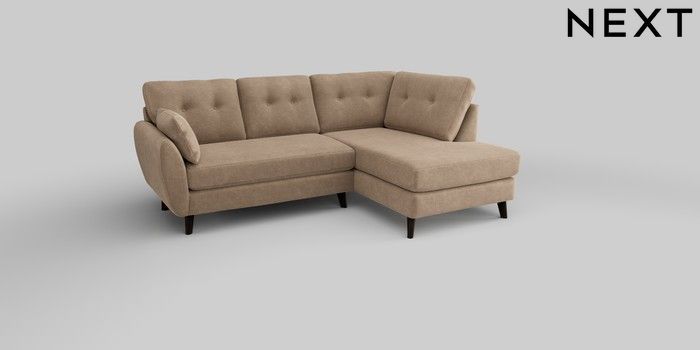 6.12.1 Buy Wilson Buttoned Back Medium Corner Chaise - Right Hand Luxe Chenille Mid Camel Beige Retro Tapered - Dark from the Next UK online shop Click here to use our accessible website