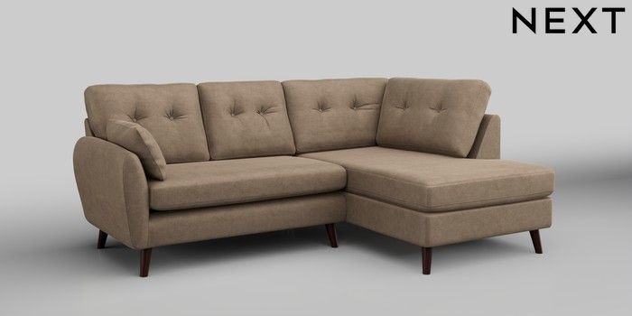 6.12.1 Buy Wilson Buttoned Back Medium Corner Chaise - Right Hand Luxe Chenille Mid Camel Beige Retro Tapered - Dark Brown from the Next UK online shop Click here to use our accessible website