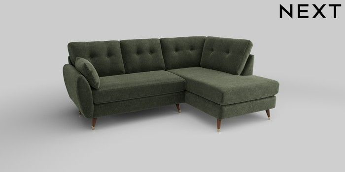 6.12.1 Buy Wilson Buttoned Back Medium Corner Chaise - Right Hand Luxe Chenille Mid Green Low Retro Tapered Metal Cap - Mid from the Next UK online shop Click here to use our accessible website