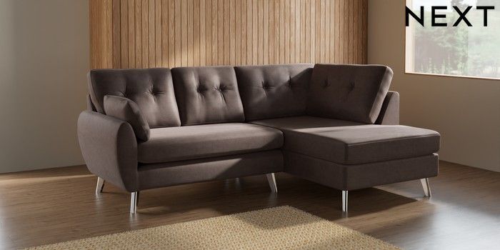 7.2.10 Buy Wilson Buttoned Back Medium Corner Chaise - Right Hand Luxe Chenille Mink Brown Metal Tapered - Chrome from the Next UK online shop Click here to use our accessible website