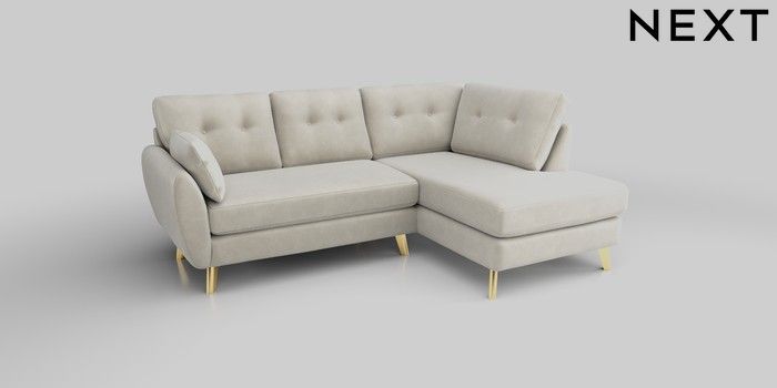 7.0.3 Buy Wilson Buttoned Back Medium Corner Chaise - Right Hand Luxe Chenille Oyster Metal Tapered - Gold from the Next UK online shop Click here to use our accessible website