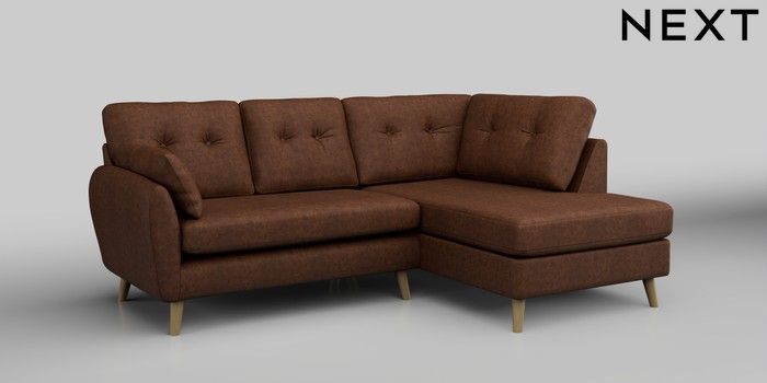 6.12.1 Buy Wilson Buttoned Back Medium Corner Chaise - Right Hand Monza Faux Leather Easy Clean Chestnut Brown Retro Tapered - Light from the Next UK online shop Click here to use our accessible website