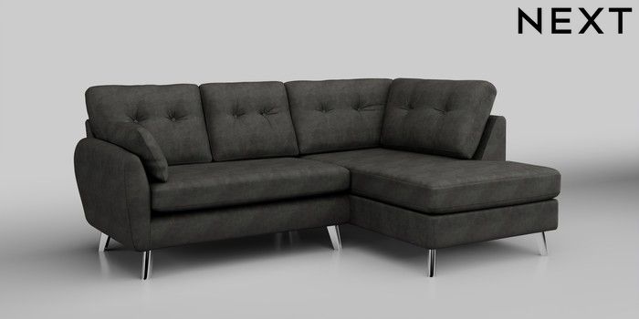 6.12.1 Buy Wilson Buttoned Back Medium Corner Chaise - Right Hand Monza Faux Leather Easy Clean Dark Grey Metal Tapered - Chrome from the Next UK online shop Click here to use our accessible website