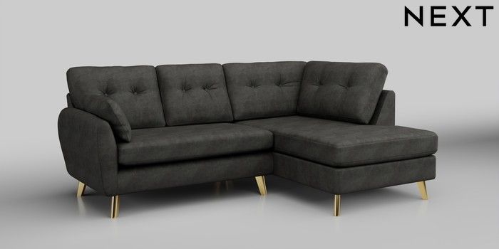 6.12.1 Buy Wilson Buttoned Back Medium Corner Chaise - Right Hand Monza Faux Leather Easy Clean Dark Grey Metal Tapered - Gold from the Next UK online shop Click here to use our accessible website