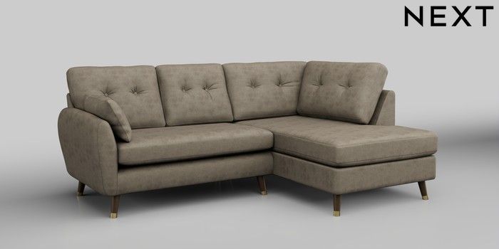 6.12.1 Buy Wilson Buttoned Back Medium Corner Chaise - Right Hand Monza Faux Leather Easy Clean Mink Brown Low Retro Tapered Metal Cap - Mid from the Next UK online shop Click here to use our accessible website