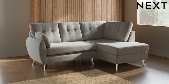 7.2.6 Buy Wilson Buttoned Back Medium Corner Chaise - Right Hand Multi Weave Light Blue Metal Tapered - Chrome from the Next UK online shop Click here to use our accessible website
