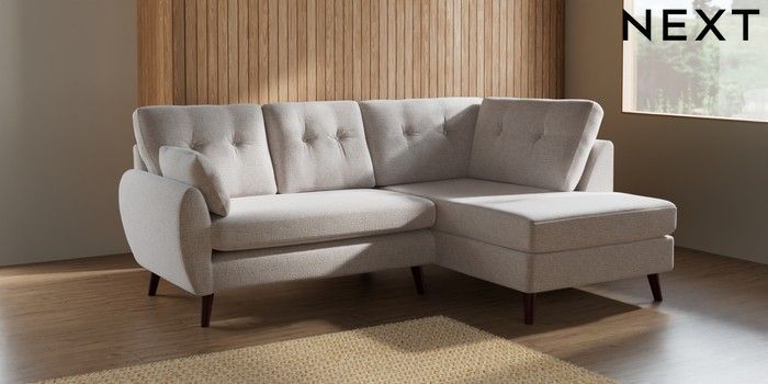7.2.6 Buy Wilson Buttoned Back Medium Corner Chaise - Right Hand Multi Weave Oyster Retro Tapered - Dark Brown from the Next UK online shop Click here to use our accessible website