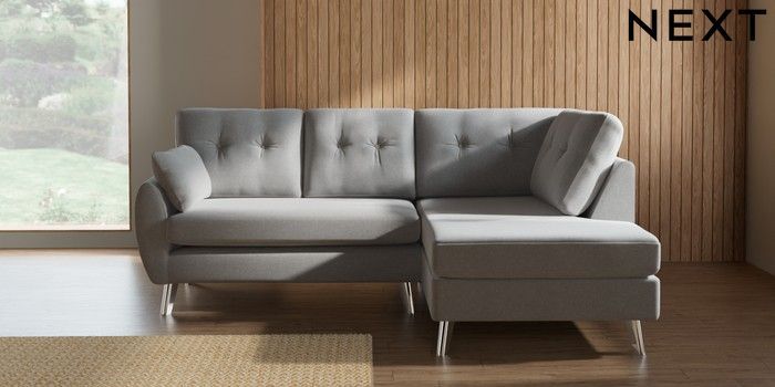 7.3.1 Buy Wilson Buttoned Back Medium Corner Chaise - Right Hand Natural Mix Light Grey Metal Tapered - Chrome from the Next UK online shop