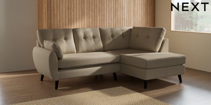 7.2.10 Buy Wilson Buttoned Back Medium Corner Chaise - Right Hand Natural Mix Light Natural Retro Tapered - Dark from the Next UK online shop Click here to use our accessible website